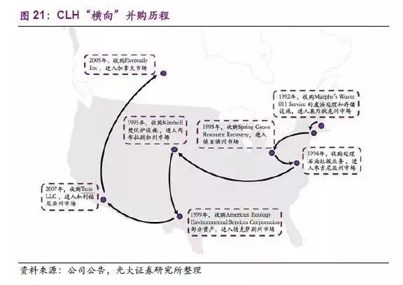 CLH通過這次并購一舉成為美國最大的危廢處置公司,奠定了危廢行業(yè)新的競爭格局。在這次行業(yè)洗牌中,傳統(tǒng)巨頭企業(yè)受到的沖擊較大,由于體量較大較難通過適時(shí)的調(diào)整及時(shí)止損,而受沖擊較小的中小企業(yè)反而通過合理并購成為新巨頭,如CLH。