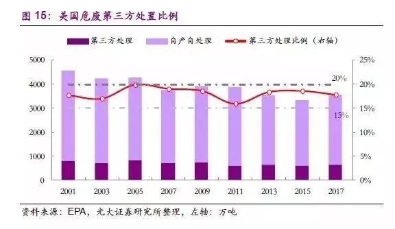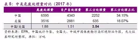 國內(nèi)危廢處理可比空間約是美國的3-4 倍。