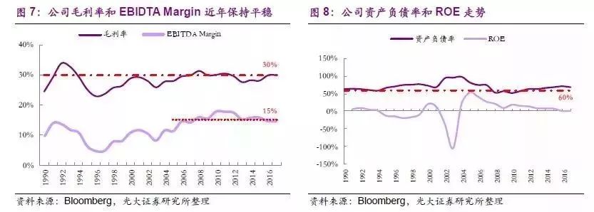 隨著公司SK環(huán)境服務(wù)營業(yè)收入穩(wěn)步增長,公司各項(xiàng)業(yè)務(wù)占比基本保持穩(wěn)定,同時(shí)毛利率和EBITDA Margin 在近年也保持穩(wěn)定(分別維持在30%和15%左右);另一方面,公司資產(chǎn)負(fù)債率在收購SK 化學(xué)分部飆升至90%以后,通過穩(wěn)健經(jīng)營逐步回落至60%的平均水平,但是公司凈利率近年來表現(xiàn)不盡如人意,影響ROE持續(xù)走低。