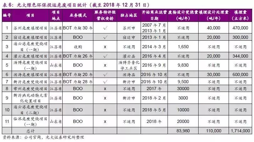 截止2018年12月31日,綠色環(huán)保共擁有58個生物質(zhì)綜合利用項(xiàng)目(運(yùn)營22個、在建14個、籌建13個、未啟動二期項(xiàng)目9個)、32個危廢綜合處理項(xiàng)目(運(yùn)營11個、在建4個、籌建17個)、7個光伏發(fā)電項(xiàng)目和2個風(fēng)電項(xiàng)目(均已投運(yùn))、以及9個環(huán)境修復(fù)項(xiàng)目(運(yùn)營1個、在建7個、籌建1個),總投資共約240億元,年生活垃圾處理產(chǎn)能102萬噸,年危廢處理產(chǎn)能19.4萬噸(焚燒8.4、填埋11),年供熱量96萬噸。