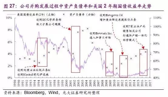 (1)內(nèi)因:發(fā)展戰(zhàn)略清晰,并購時(shí)機(jī)得當(dāng)。從早期的“橫向”并購穩(wěn)步擴(kuò)大公司規(guī)模,到危廢行業(yè)轉(zhuǎn)型期抓住機(jī)會并購SK 一舉做大公司體量,再到危廢成熟期的跨行業(yè)并購多元化發(fā)展穩(wěn)固公司危廢處理龍頭地位,公司在不同階段的發(fā)展戰(zhàn)略十分清晰;同時(shí)公司的幾個重要并購均處在融資成本相對合理的時(shí)期,資產(chǎn)負(fù)債率雖然在并購發(fā)生時(shí)有所提升,但后續(xù)的管控使得資產(chǎn)負(fù)債率一直處于相對平穩(wěn)水平。