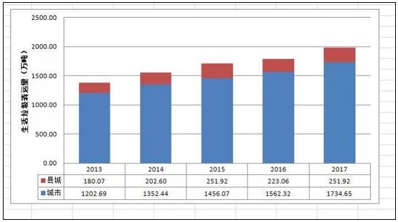 上圖:江蘇省生活垃圾清運(yùn)量統(tǒng)計(jì),來(lái)源:住建部城鄉(xiāng)建設(shè)統(tǒng)計(jì)年鑒