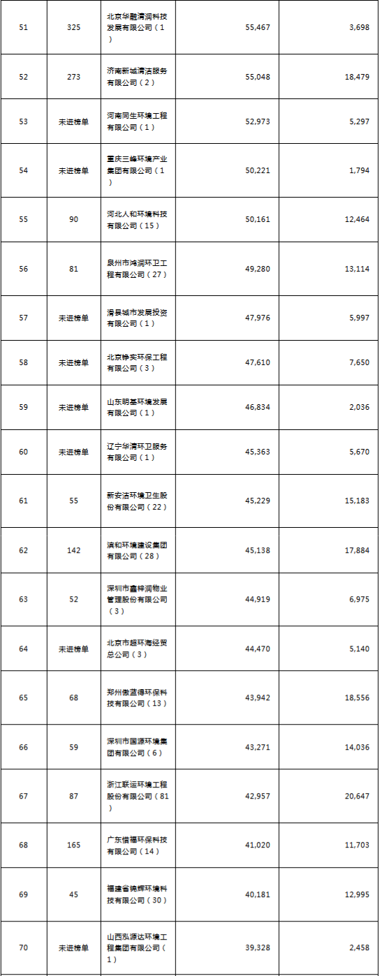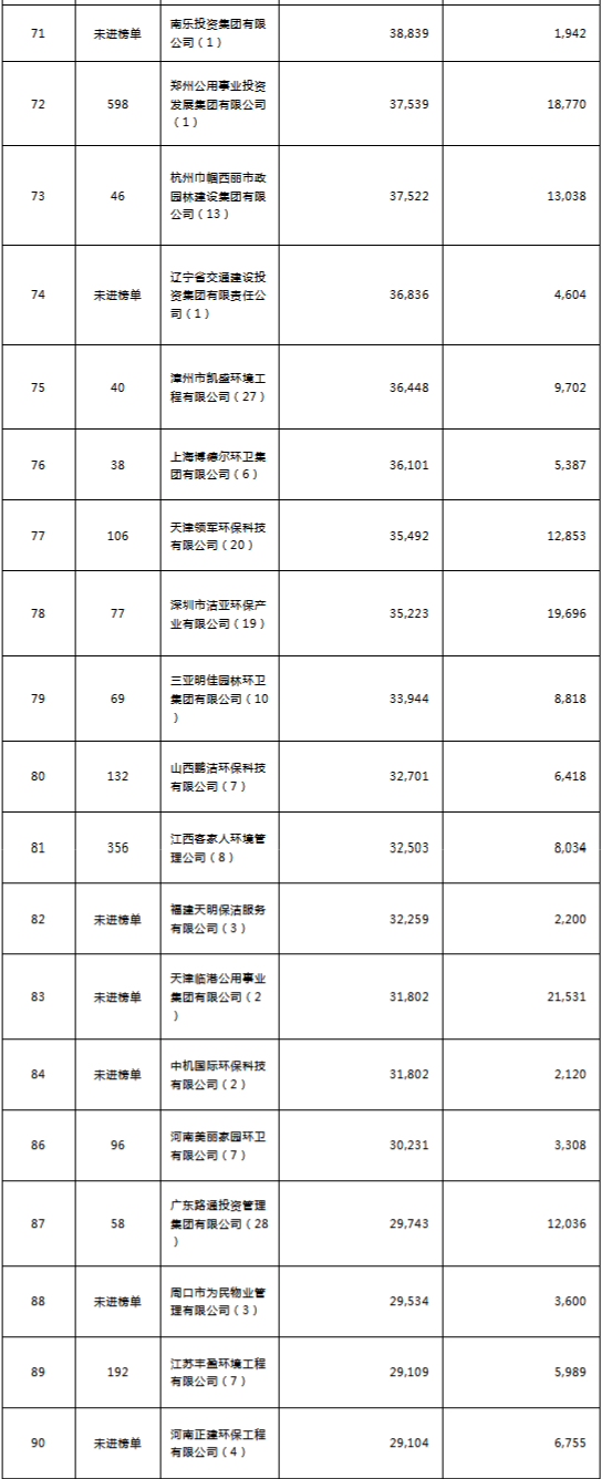 環(huán)境司南2018年度環(huán)衛(wèi)服務企業(yè)(簽約能力)百強榜