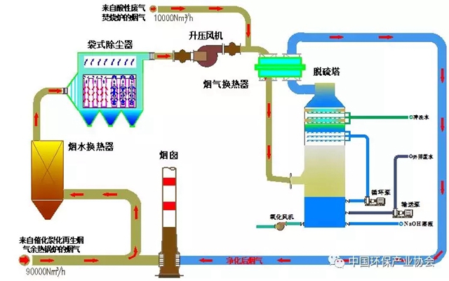 工程規(guī)模:煙氣量10萬(wàn)m3/h(裂化再生煙氣90000m3/h+酸性廢氣焚燒爐煙氣10000m3/h)。