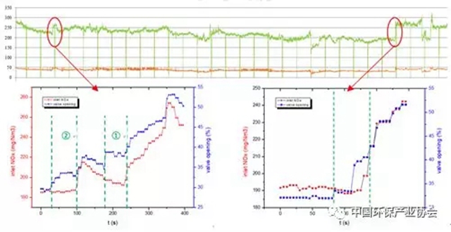 (2)從大數(shù)據(jù)超前預(yù)判及前饋調(diào)控的角度分析,運(yùn)行數(shù)據(jù)表明,受鍋爐組織燃燒端、制粉端多輸入單輸出大數(shù)據(jù)預(yù)測(cè)模型的積極影響,噴氨閥門開度的作用時(shí)刻先于入口NOx濃度變動(dòng)顯示時(shí)刻50s~80s左右,有效克服了因濃度測(cè)量帶來(lái)的大遲滯效應(yīng);在入口NOx濃度的測(cè)量遲滯作用基本消除后,噴氨閥門開度與入口NOx濃度的變化趨勢(shì)較為相似,此時(shí)前饋效應(yīng)較為顯著。