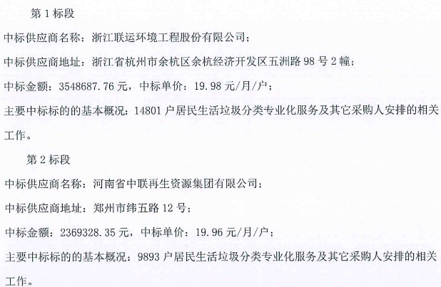 原標(biāo)題:鄭州市金水區(qū)生活垃圾分類項目結(jié)果發(fā)布,聯(lián)運環(huán)境攬獲包一