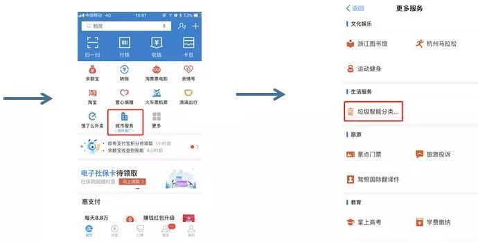 用戶(hù)可以在支付寶城市服務(wù)目錄里的垃圾智能分類(lèi)端口進(jìn)入。