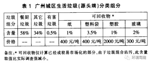 目前,廣州市正在推進(jìn)生活垃圾分類工作。將生活垃圾分為“餐廚垃圾、可回收物、其它垃圾和有害垃圾”等四種。然而,由于多方面的原因,現(xiàn)階段垃圾分類產(chǎn)生的“餐廚垃圾”仍混有大量塑料、紙、玻璃等其它類垃圾,無法直接進(jìn)入餐廚垃圾資源化處理設(shè)施進(jìn)行處理,為滿足進(jìn)場要求,必須對一次分類后的生活垃圾進(jìn)行人工二次分類,以提高餐廚垃圾的純度。據(jù)了解,廣州市某街道已經(jīng)在開展此項工作,每天向廣州大田山餐廚垃圾資源化處理廠提供數(shù)噸餐廚垃圾。但類似項目環(huán)衛(wèi)工人的工作量、用工成本等沒有經(jīng)過科學(xué)核算,財政補貼缺失或缺乏依據(jù),項目難以持續(xù)。本文即在深入調(diào)查研究該項目基礎(chǔ)上,討論人工分揀的成本、經(jīng)濟(jì)效益和可行性。