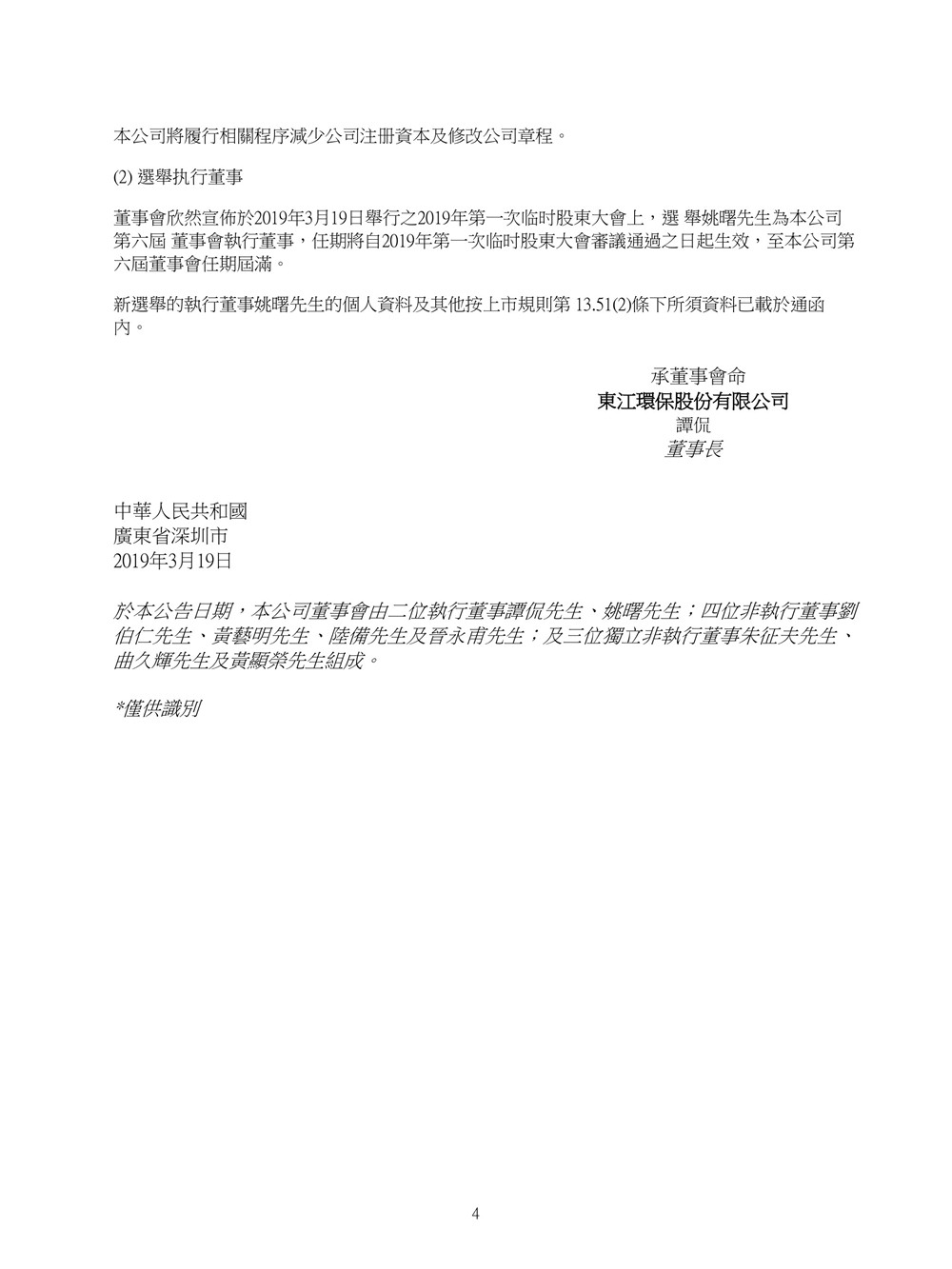 東江環(huán)保發(fā)布公告,于2019年3月19日舉行2019年第一次臨時股東大會上,選舉姚曙為公司第六屆董事會執(zhí)行董事,任期將自2019年第一次臨時股東大會審議通過之日起生效,至公司第六屆董事會任期屆滿。