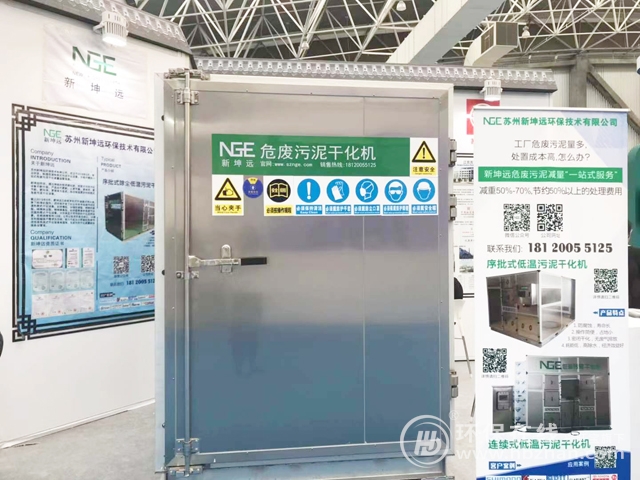 本屆展會上,新坤遠用“一站式運營服務”開啟了其環(huán)保智造的新篇章。作為新產品和新技術的主要代表產品,危廢污泥干化機一經亮相便引來關注目光。公開資料顯示,該設備即利用除濕熱泵,通過熱風循環(huán)對污泥進行冷凝、除濕、烘干。反復試驗結果證明,經處理后污泥中可減少50%—80%的水分。