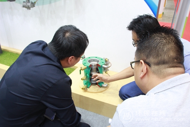 圖為上龍供水工作人員為參展觀眾介紹產(chǎn)品