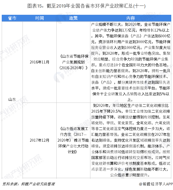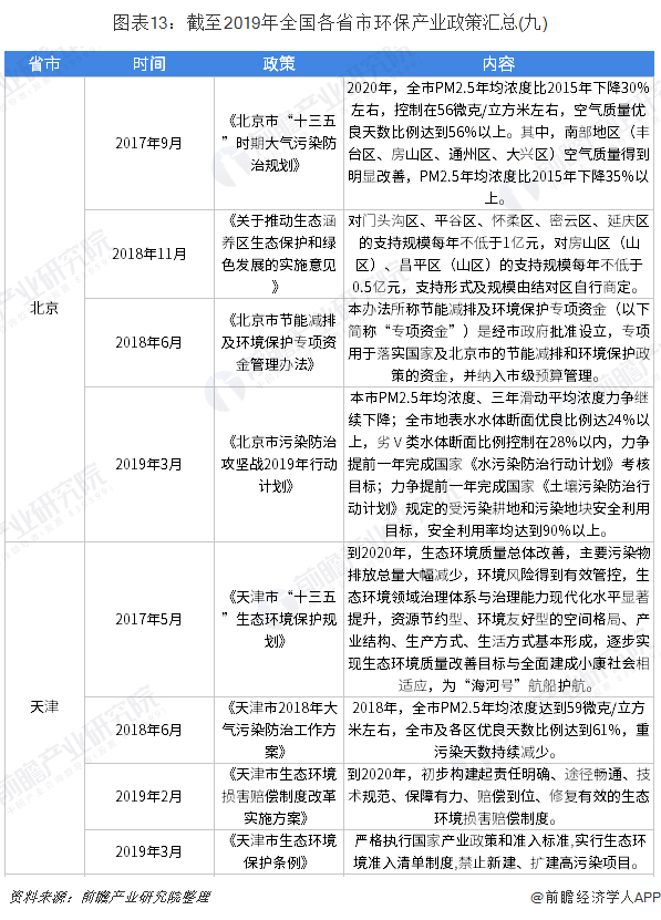 截至2019年全國(guó)各省市環(huán)保產(chǎn)業(yè)政策匯總
