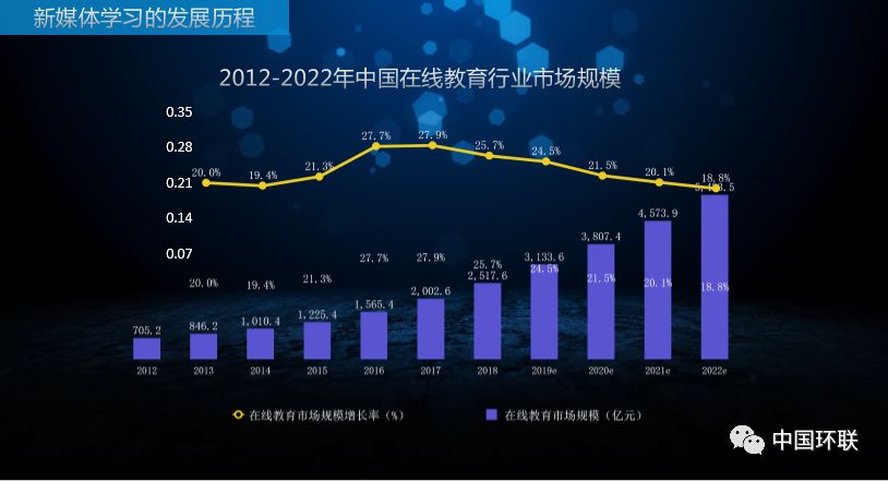 中國在線教育行業(yè)的市場規(guī)模發(fā)展上,已由2012年的705.2億元增長至2018年的2517.6億元,并基本保持20%以上的年增長率,預計到2022年可突破5000億元。2019年H1中國在線教育的市場細分結構上,以高等學歷教育為主,占比49.6%;其次為職業(yè)培訓,占比25.5%;K12教育占比20.7%。當前新媒體學習的用戶粘性持續(xù)加強,使用場景更加碎片化,線上學習已成為最主流的知識獲取方式。
