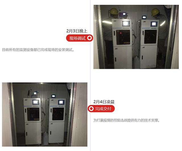 此次緊急馳援前方現(xiàn)場設(shè)備為公司助力武漢防疫定向捐贈(zèng),包括COD、氨氮、余氯等參數(shù)水質(zhì)在線監(jiān)測設(shè)備,2月2日水質(zhì)在線監(jiān)測設(shè)備均已完成現(xiàn)場安裝調(diào)試,截至2月5日所有監(jiān)測設(shè)備已全部投入正常運(yùn)行。