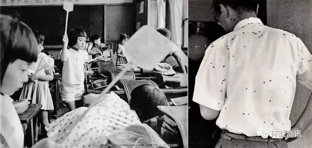 ▲20世紀(jì)50年代東京江東區(qū)的垃圾填埋地附近。超負(fù)荷運(yùn)轉(zhuǎn)對(duì)周圍學(xué)校的環(huán)境造成了極大的破壞,“與蒼蠅同樂”成了當(dāng)時(shí)孩子們上課的日常