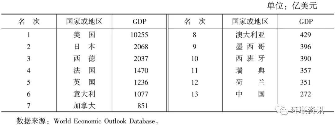 ▲1970年部分國(guó)家的GDP數(shù)據(jù)。此時(shí)的日本已經(jīng)成為僅次于美國(guó)的第二大經(jīng)濟(jì)體,占到美國(guó)GDP的20%有余