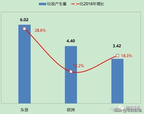 根據(jù)2018年12月世界銀行發(fā)布的調(diào)查報(bào)告,2016年全球城市生活垃圾產(chǎn)生量為20.1億噸。東亞太平洋地區(qū)是目前產(chǎn)生垃圾最多的區(qū)域,占世界垃圾總量的23%。盡管高收入國(guó)家僅占全球人口的16%,但產(chǎn)生的垃圾量卻超過世界垃圾總量的三分之一。
