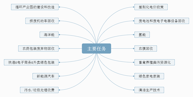 綠色生產(chǎn)和綠色消費囊括了社會生活的方方面面活動,主要任務(wù)進一步細分了這兩大板塊的內(nèi)容。其中,要圈起來的點包括但不僅限于