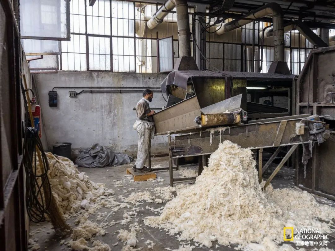 在意大利普拉托的工廠中,羊毛和廢棄衣服的山脈按顏色分類(lèi),清洗,加工后用于制造新衣服。