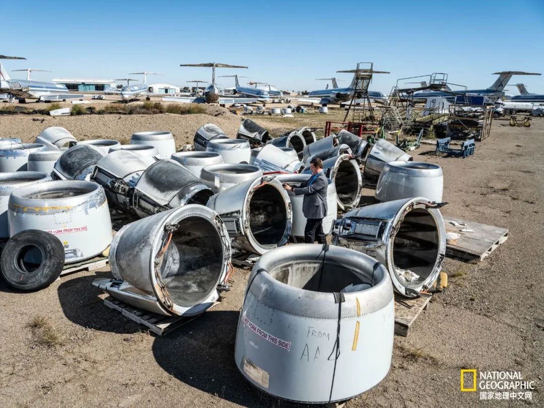 布倫特·韋伯在羅斯韋爾的卡武航空航天(Cavu Aerospace)檢查已退役的美國(guó)航空麥克唐納·道格拉斯MD-80s的發(fā)動(dòng)機(jī)零件。該公司拆卸飛機(jī)進(jìn)行回收和再制造。
