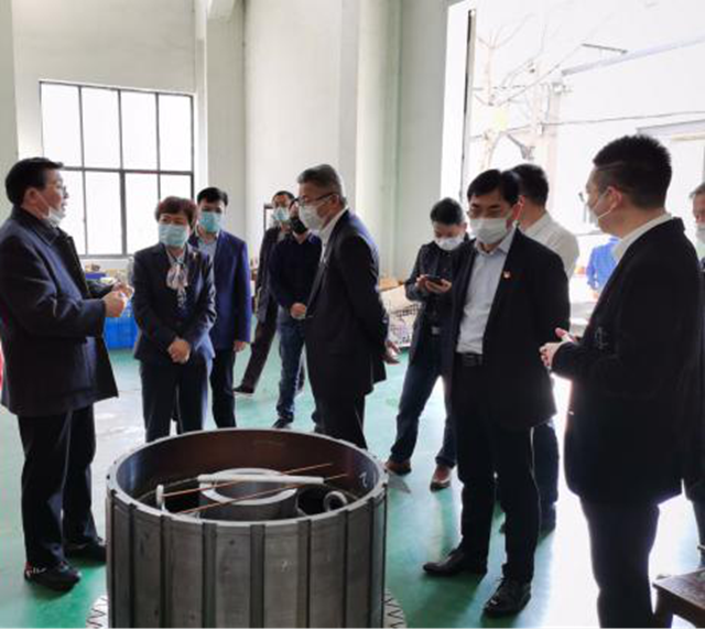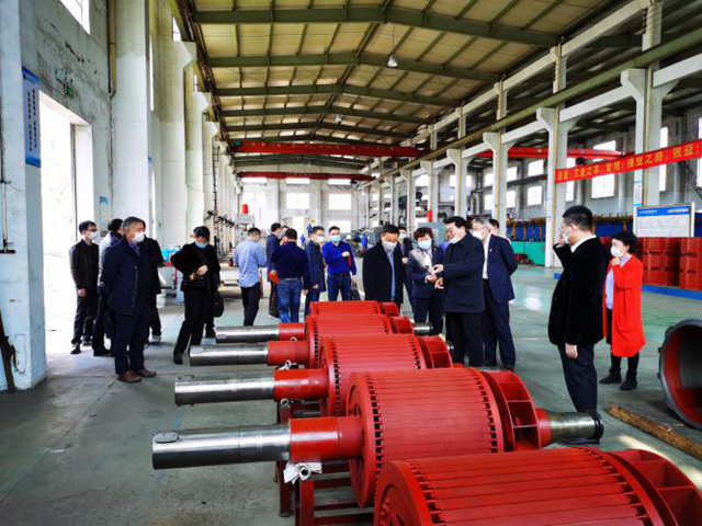 謝董一行參觀了公司的生產(chǎn)車間、測(cè)試車間,對(duì)永發(fā)機(jī)電的生產(chǎn)能力、技術(shù)水平、工藝流程進(jìn)行了詳細(xì)了解。高董首先對(duì)謝董一行的到來表示熱烈歡迎,向謝董一行匯報(bào)了永發(fā)公司目前業(yè)務(wù)開展情況。在聽完高董的介紹后,謝董對(duì)永發(fā)機(jī)電的研發(fā)能力和制造能力給予了充分肯定,她認(rèn)為,永發(fā)機(jī)電擁有五十余年的電機(jī)制造經(jīng)驗(yàn),尤其是目前不斷涉及的水利領(lǐng)域、軍工領(lǐng)域,創(chuàng)新研究的努力與成果值得贊賞!并表示省機(jī)電集團(tuán)會(huì)積極考慮與永發(fā)公司在風(fēng)電設(shè)備、軍工設(shè)備等領(lǐng)域進(jìn)行合作。