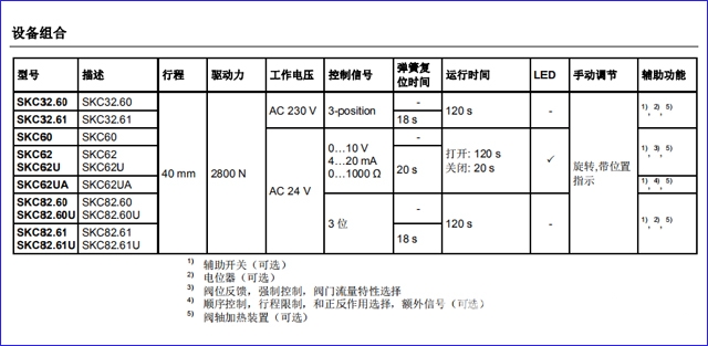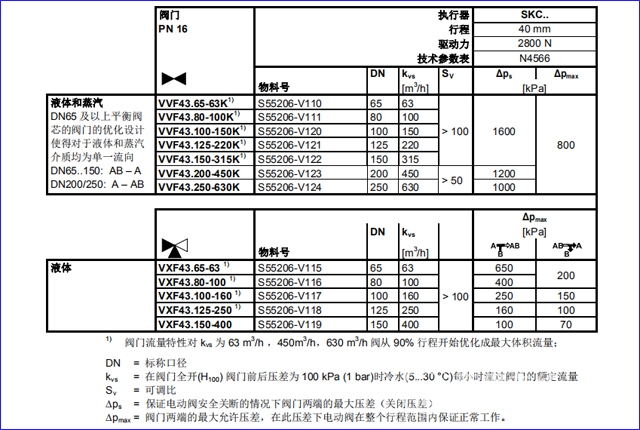 上圖為西門子電動調(diào)節(jié)閥的系列參數(shù)