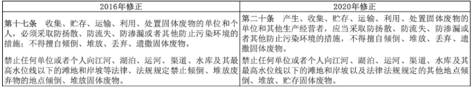 新法在這條中加入了“產(chǎn)生固體廢物的單位”和“其他生產(chǎn)經(jīng)營者”,將固體廢物污染環(huán)境責任前伸至產(chǎn)生端,符合前文中對于固廢全流程污染擔責的原則。“堆放”和“貯存”固體廢物主要區(qū)別在于是否進行安全、無害化的預處理,但實際環(huán)境執(zhí)法過程中往往難以準確定義。這一問題在連續(xù)兩年的針對長江流域的“清廢行動”中大量存在。因此此次新法將“貯存”也納入條款,為環(huán)境執(zhí)法掃清障礙。