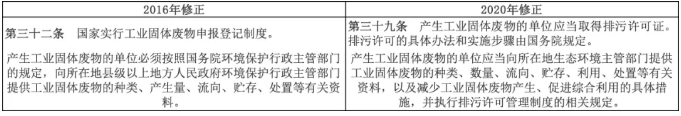 新法明確了工業(yè)固體廢物納入排污許可證管理。2018年1月,生態(tài)環(huán)境部發(fā)布《排污許可管理辦法(試行)》,制定分類管理目錄,對固定污染源排污進行管理。(參考閱讀→環(huán)保部發(fā)布《排污許可管理辦法(試行)》)