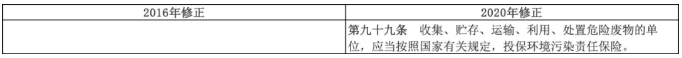 新增了收集、貯存、運輸、利用、處置危險廢物的單位,應當投保環(huán)境污染責任保險的要求。這是我國環(huán)境保護法律首次規(guī)定強制性的環(huán)境污染責任保險投保責任。