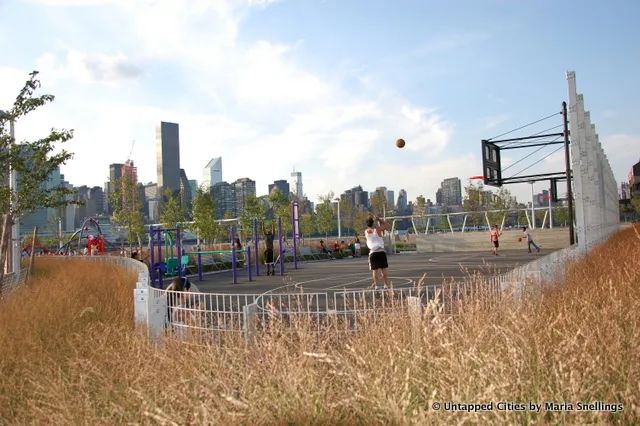 城市沙灘:在遮蔭長廊和公園步道的圍合中,一處充滿著休閑氛圍的城市沙灘為人們提供了日光浴、野餐、打沙灘排球的理想活動場地。在這里,游人們可以盡情地赤腳踏沙,嬉戲玩鬧間還可欣賞到曼哈頓天際處獨特的濱水落日景觀。
