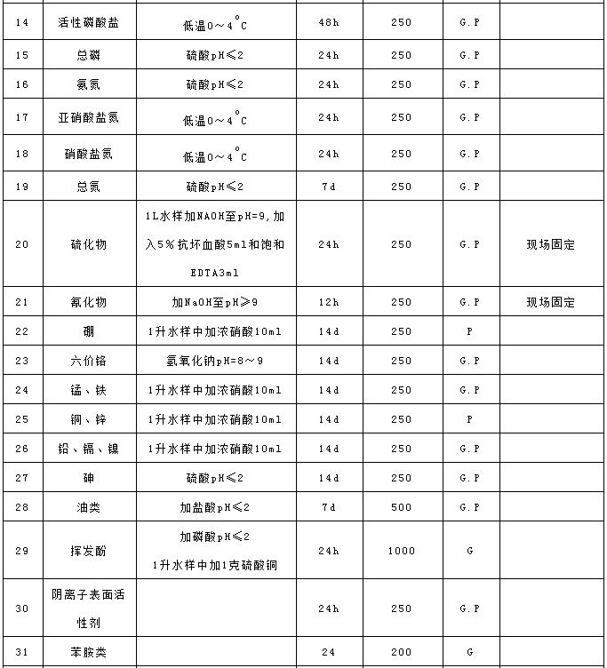 各種項(xiàng)目水樣的不同保存條件見附表。