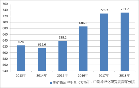 據(jù)統(tǒng)計,我國每年產(chǎn)生大量的廢礦物油,2013年我國廢礦物油行業(yè)產(chǎn)生量約624萬噸,到2018年產(chǎn)生量達到了731.7萬噸。