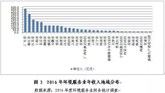 利于環(huán)境服務(wù)業(yè)發(fā)展的政策不斷推出,污染減排工作的持續(xù)深入,環(huán)境治理要求的日益嚴格,流域、區(qū)域等PPP模式的加速推進等,帶動了行業(yè)發(fā)展領(lǐng)域的拓寬和市場潛力的進一步釋放。環(huán)境服務(wù)業(yè)年收入呈現(xiàn)小幅增長,2016年收入約2662.9億元,同比增長13.8%,但同比增幅放緩,較上年降低近12個百分點。
