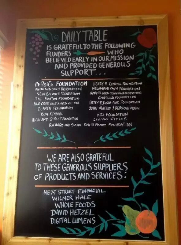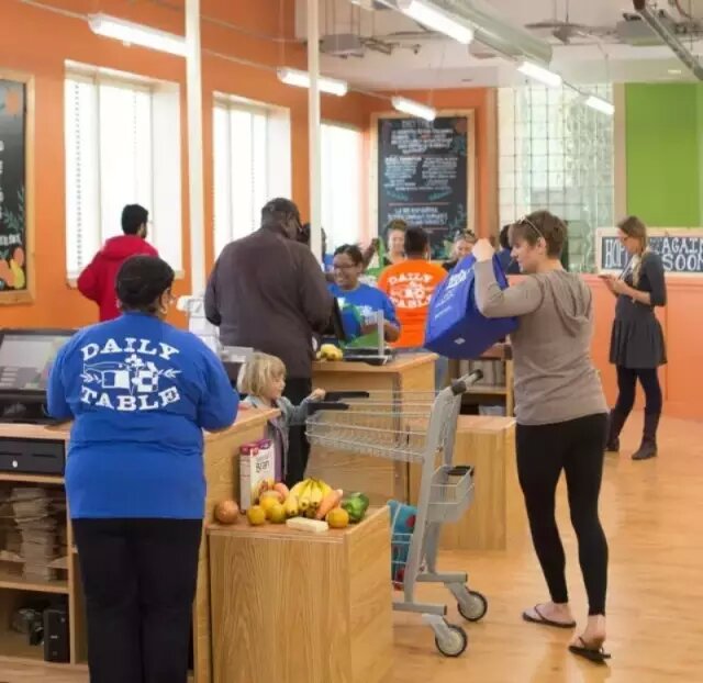 去年,他在大波士頓地區(qū)的Dorchester創(chuàng)建了第一家Daily Table,專門為低收入者提供健康、營養(yǎng)、低價(jià)的食品。這些食品來源主要是廠商生產(chǎn)過量沒有售出以及臨近保質(zhì)期或最佳食用日期的食品。它們多由生產(chǎn)商、供貨商、分銷商、食物救濟(jì)組織捐贈(zèng),也有一部分通過購買獲得,在Daily Table的售價(jià)通常僅為其他超市的1/3。