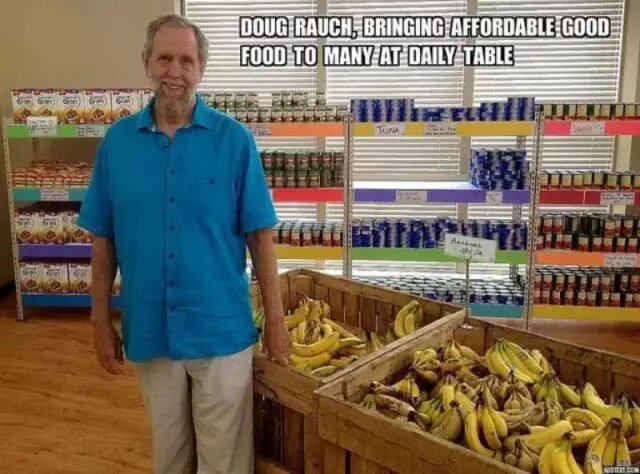 是的,Doug Rauch,他在做。他曾是美國連鎖超市Trader Joe’s的創(chuàng)始人,并且在那里工作了31年,可稱作零售業(yè)的老司機(jī)。據(jù)了解,Rauch是在2010-2012年參加哈佛大學(xué)高級(jí)領(lǐng)導(dǎo)者聯(lián)盟學(xué)習(xí)時(shí)產(chǎn)生了創(chuàng)建Daily Table的想法。他最初的想法是解決窮人吃不飽(不夠卡路里)的問題。但經(jīng)過研究發(fā)現(xiàn),美國有幾百個(gè)與Food Bank類似的大大小小公益組織,都旨在提供熱量,而不是營養(yǎng)。所以他開始將注意力轉(zhuǎn)移到如何讓低收入者吃得健康上。根據(jù)設(shè)計(jì)的商業(yè)模式,Daily Table將能自給自足持續(xù)運(yùn)轉(zhuǎn)下去,而不需要依靠外界的資金捐贈(zèng)。