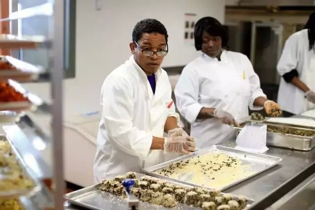 店里首席廚師也來頭不小,Ismail Samad先生曾供職于包括米其林在內(nèi)的多家餐廳。現(xiàn)在他的任務(wù)可不只是將食物做好吃那么簡(jiǎn)單,挑戰(zhàn)多著呢。試想2000磅胡蘿卜擺在你面前,需要采用有創(chuàng)造性的方法烹飪并要易于保存,然后賣給經(jīng)濟(jì)收入較低的居民,這是什么感覺?而他每天都要帶領(lǐng)團(tuán)隊(duì)面臨這種挑戰(zhàn)。同時(shí),這些成品必須經(jīng)過膳食指南的嚴(yán)格檢驗(yàn)以保證健康營養(yǎng)。此外,重要的話說三遍,便宜。每份主菜售價(jià)在1.79-4.99美元之間,配菜為50美分-1美元,湯為1.99-3.99美元。