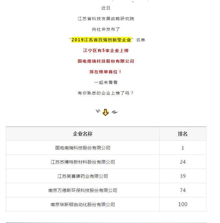 近日,江蘇省科技情報研究與江蘇省科技發(fā)展戰(zhàn)略研究院分別發(fā)布了“南京市2019年度百強(qiáng)高新技術(shù)企業(yè)”名單、“2019年江蘇省百強(qiáng)創(chuàng)新型企業(yè)”名單,南京萬德斯環(huán)??萍脊煞萦邢薰就瑫r位列兩張榜單之中,成為“高新創(chuàng)新雙百”企業(yè)中的一顆耀眼之星。
