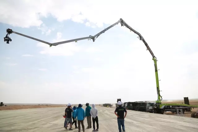 作為此次全球直播任務(wù)唯一大型裝備專供企業(yè),中聯(lián)重科共調(diào)派了95噸及以上的大噸位汽車起重機(jī),4.0泵車,消防云梯車等10余臺高端設(shè)備助力央視拍攝。據(jù)中聯(lián)重科該項(xiàng)目技術(shù)負(fù)責(zé)人趙建陽介紹,與以往的閱兵儀式不同,此次沙場閱兵地處塞北大漠之中,光照強(qiáng)烈,常年風(fēng)沙大,對設(shè)備和現(xiàn)場工作人員而言都是極大的考驗(yàn)。
