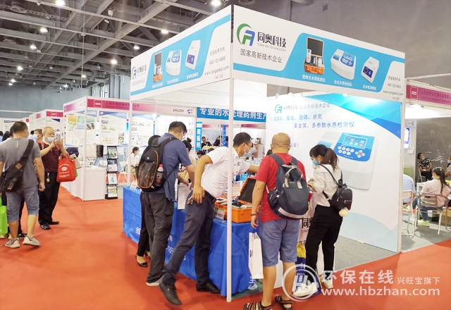 圖為廣東國際水展現(xiàn)場 參展觀眾駐足同奧科技展臺前