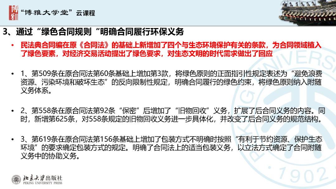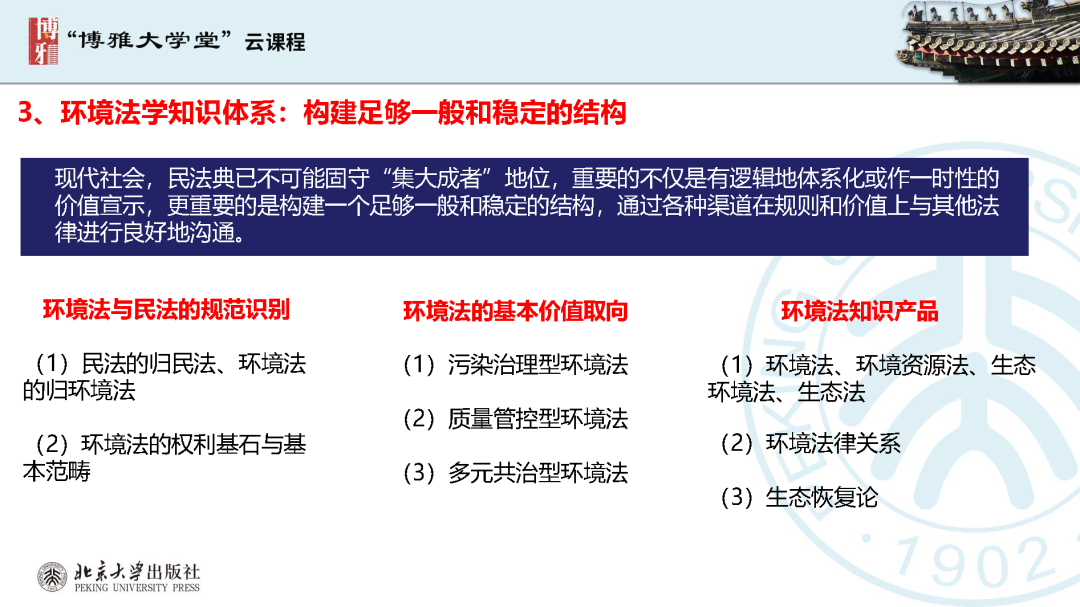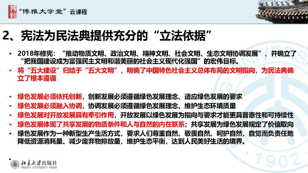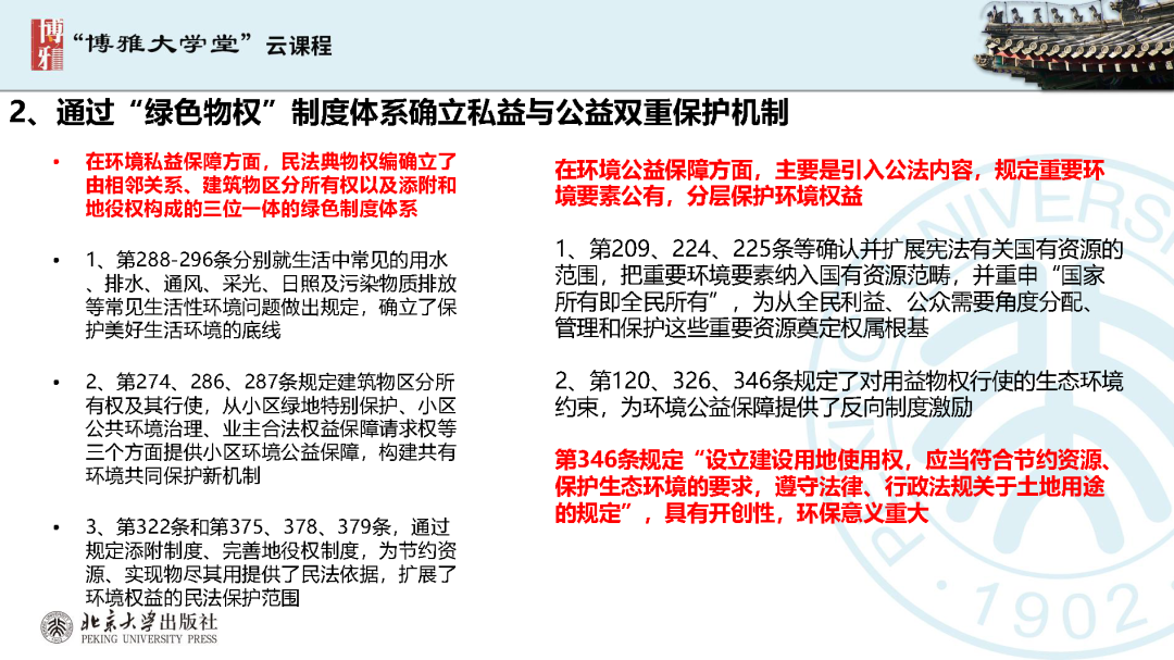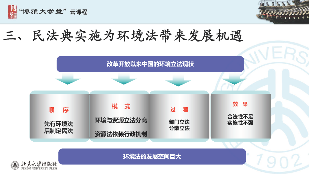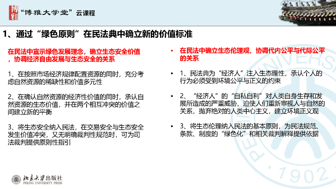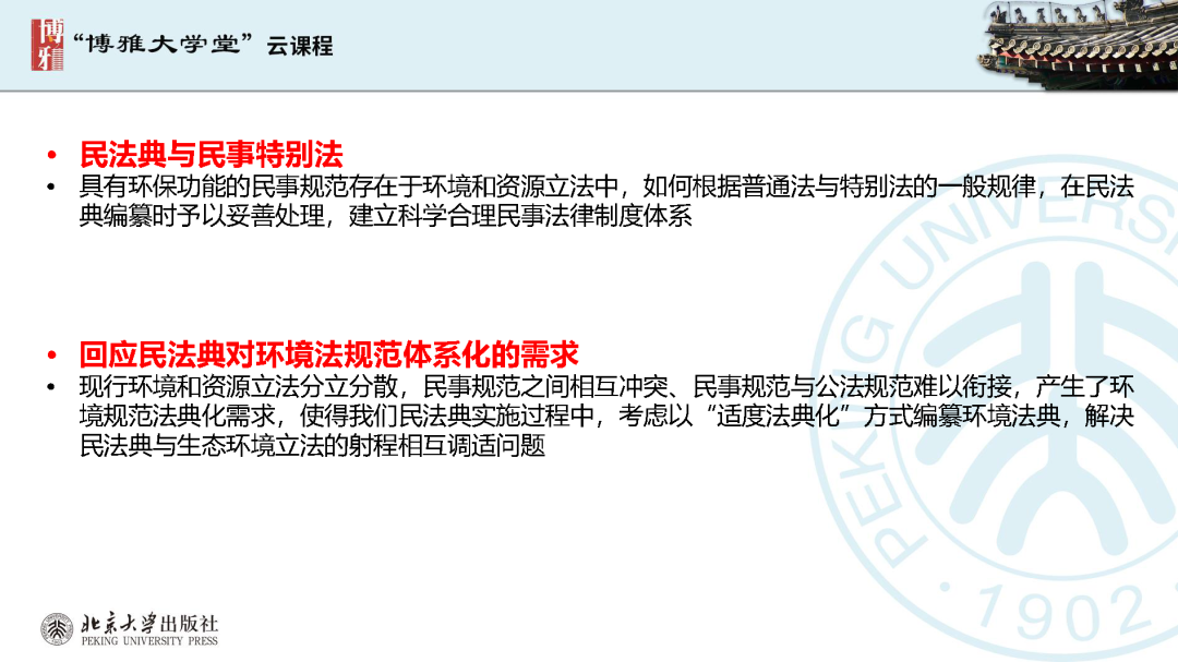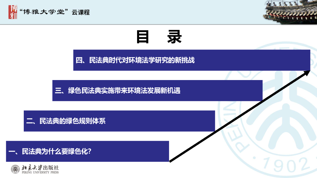 本文為?呂忠梅?老師在博雅大學(xué)堂上的報告。題目為《綠色民法典實施:環(huán)境法的機(jī)遇與挑戰(zhàn)》。內(nèi)容主要涉及民法典為什么要綠色化、民法典的綠色規(guī)則體系及綠色民法典給環(huán)境法帶來的新機(jī)遇和新挑戰(zhàn)。