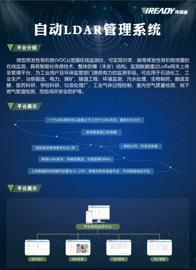 特別是在生態(tài)環(huán)境部發(fā)布的《2020年揮發(fā)性有機(jī)物治理攻堅(jiān)方案》的要求下,偉瑞迪提出的VOCs在線(xiàn)監(jiān)測(cè)與環(huán)境風(fēng)險(xiǎn)預(yù)警一體化解決方案不僅貼合實(shí)際需求,對(duì)有組織排放和無(wú)組織排放多方位有效監(jiān)管,而且能夠解決園區(qū)污染種類(lèi)多、環(huán)境敏感點(diǎn)多、環(huán)境風(fēng)險(xiǎn)壓力大的問(wèn)題。