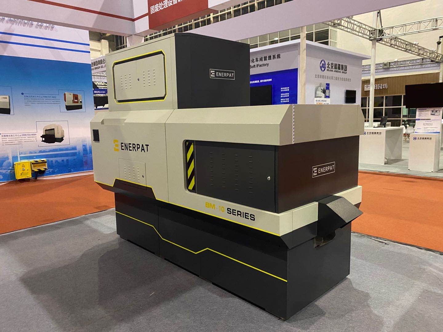 作為此次參展產(chǎn)品的重頭戲,BM系列全自動金屬屑壓餅機(jī)可謂“內(nèi)外兼修”,不僅擁有美觀、人性化的設(shè)計,而且設(shè)備升級了智能化功能、新穎的雙絞龍送料結(jié)構(gòu)、獨特的壓縮裝置、便捷的維護(hù)設(shè)計,保障了壓餅機(jī)的大壓縮比、高壓縮效率、較好的物料壓縮效果,恩派特全自動金屬屑壓餅機(jī)可以廣泛用于鐵屑、銅屑、鋼屑、鋁屑、合金鋼屑等壓餅處置,成功解決了車間金屬切屑難收集,切屑液滴漏的難題!展會現(xiàn)場,這臺金屬屑壓餅機(jī)經(jīng)常被現(xiàn)場觀眾圍在中間,客戶圍繞設(shè)備的功能、質(zhì)量進(jìn)行溝通交流。