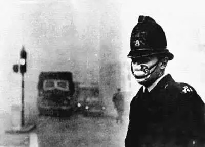 1952年12月5日開始的一星期內(nèi),倫敦市民開始感到呼吸困難、眼睛刺痛,發(fā)生哮喘、咳嗽的癥狀,倫敦醫(yī)院由于呼吸道疾病患者劇增而一時(shí)爆滿,倫敦城內(nèi)到處都可以聽到咳嗽聲。