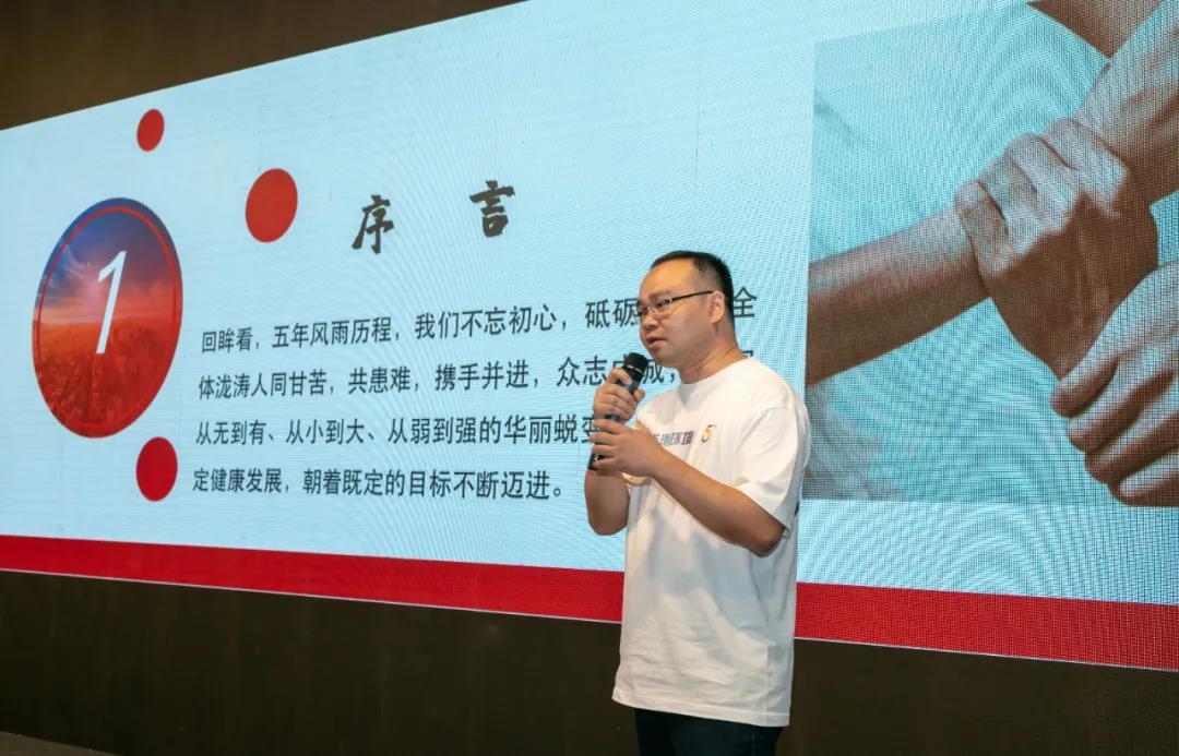 董事長潘濤回顧了瀧濤環(huán)境5年來的發(fā)展歷程,對攜手并肩、一路走來的瀧濤家人們表示衷心的感謝和祝福,介紹了公司成立的初衷與使命,即“以創(chuàng)新環(huán)境科技打造碧水藍(lán)天,為員工不斷進(jìn)步提供成長平臺”,并重申了“成為環(huán)境領(lǐng)域技術(shù)與服務(wù)的領(lǐng)先者”的愿景。