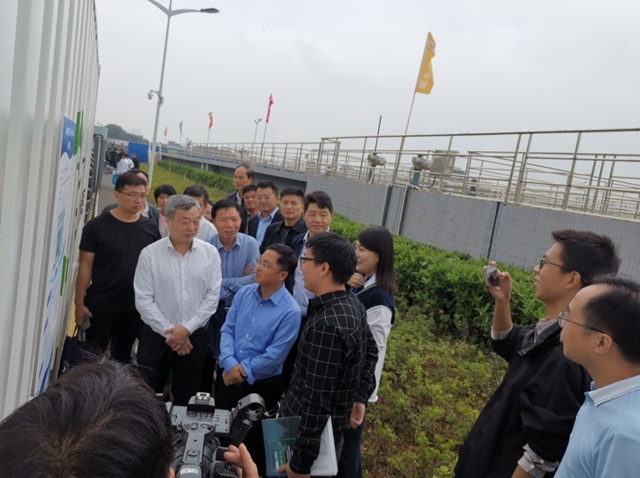 啟動儀式后,各位領(lǐng)導(dǎo)專家考察了本次生活污水一體化設(shè)備測試活動地點--長沙市聯(lián)泰水質(zhì)凈化有限公司(岳麓污水處理廠),易廳長、江處長蒞臨安力斯環(huán)境賽博集裝箱一體化設(shè)備現(xiàn)場進行參觀指導(dǎo),并詢問了安力斯高級工藝工程師羅工一些具體的技術(shù)指標問題,對安力斯的產(chǎn)品和技術(shù)給予了充分的肯定。