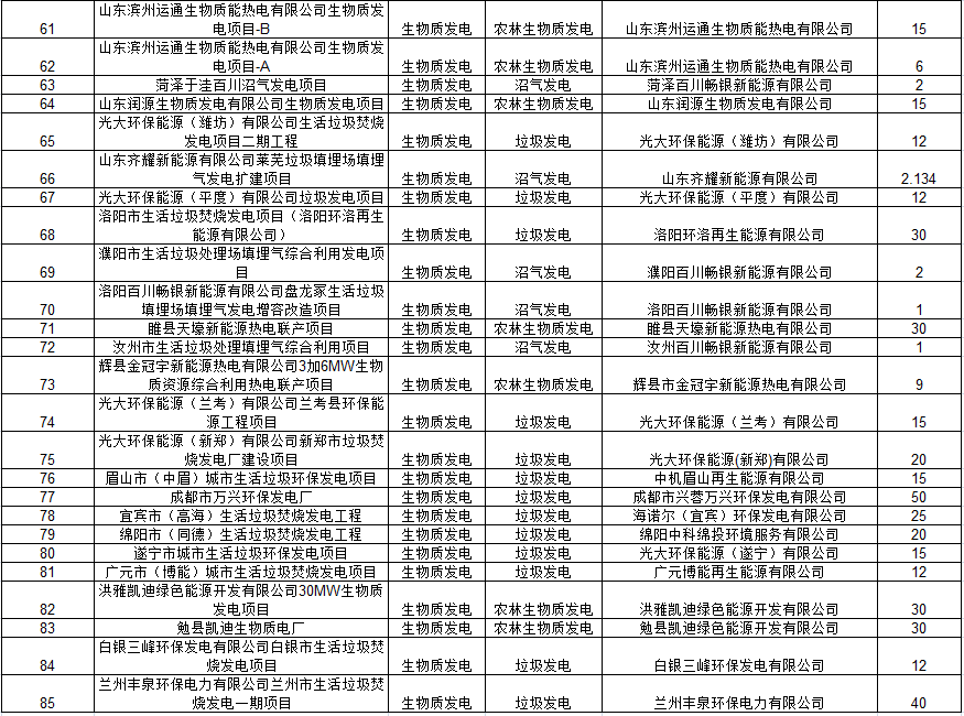 10月30日,國家電網(wǎng)有限公司已將完成公示的第六批次可再生能源發(fā)電項目補貼項目清單上報國家主管部門,本次公布的2020年第六批可再生能源發(fā)電補貼項目清單中,生物質(zhì)發(fā)電項目總計85個,其中垃圾焚燒發(fā)電項目52個,沼氣發(fā)電項目8個,農(nóng)林生物質(zhì)發(fā)電項目25個,清單如下。