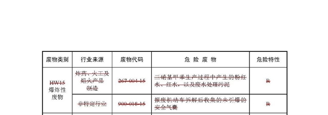 9.明確《名錄》附表中危險(xiǎn)特性代碼的含義。2016 年版《名錄》未對(duì)附表中所列危險(xiǎn)特性代碼的含義作出明確解釋,可能導(dǎo)致相關(guān)污染控制標(biāo)準(zhǔn)實(shí)施困難。本次修訂,一是明確《名錄》附表中所列危險(xiǎn)特性代碼為該種危險(xiǎn)廢物的主要危險(xiǎn)特性,同時(shí)不排除可能具有其他危險(xiǎn)特性;二是統(tǒng)一了危險(xiǎn)特性代碼的格式和含義。