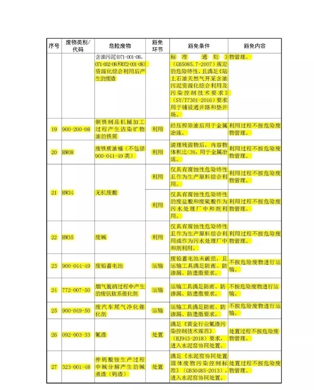 第四條 列入本名錄附錄《危險(xiǎn)廢物豁免管理清單》中的危險(xiǎn)廢物,在所列的豁免環(huán)節(jié),且滿足相應(yīng)的豁免條件時(shí),可以按照豁免內(nèi)容的規(guī)定實(shí)行豁免管理。