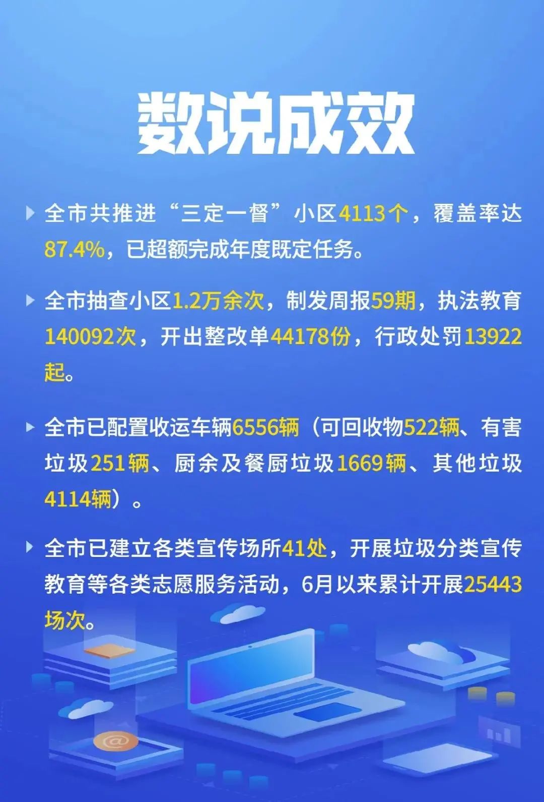 ?截至11月29日,全市共推進“三定一督”小區(qū)4113個,覆蓋率達(dá)87.4%,已超額完成年度既定任務(wù)。
