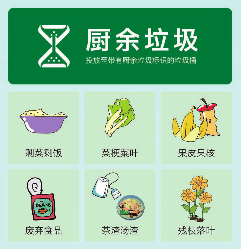 主要包括:居民家庭日常生活中產(chǎn)生的食物殘余和食物加工廢料等易腐性垃圾;相關(guān)單位食堂、賓館、飯店等產(chǎn)生的餐廚垃圾;農(nóng)貿(mào)市場(chǎng)、農(nóng)產(chǎn)品批發(fā)市場(chǎng)產(chǎn)生的蔬菜瓜果垃圾、腐肉、肉碎骨、蛋殼、畜禽產(chǎn)品內(nèi)臟等易腐性垃圾。